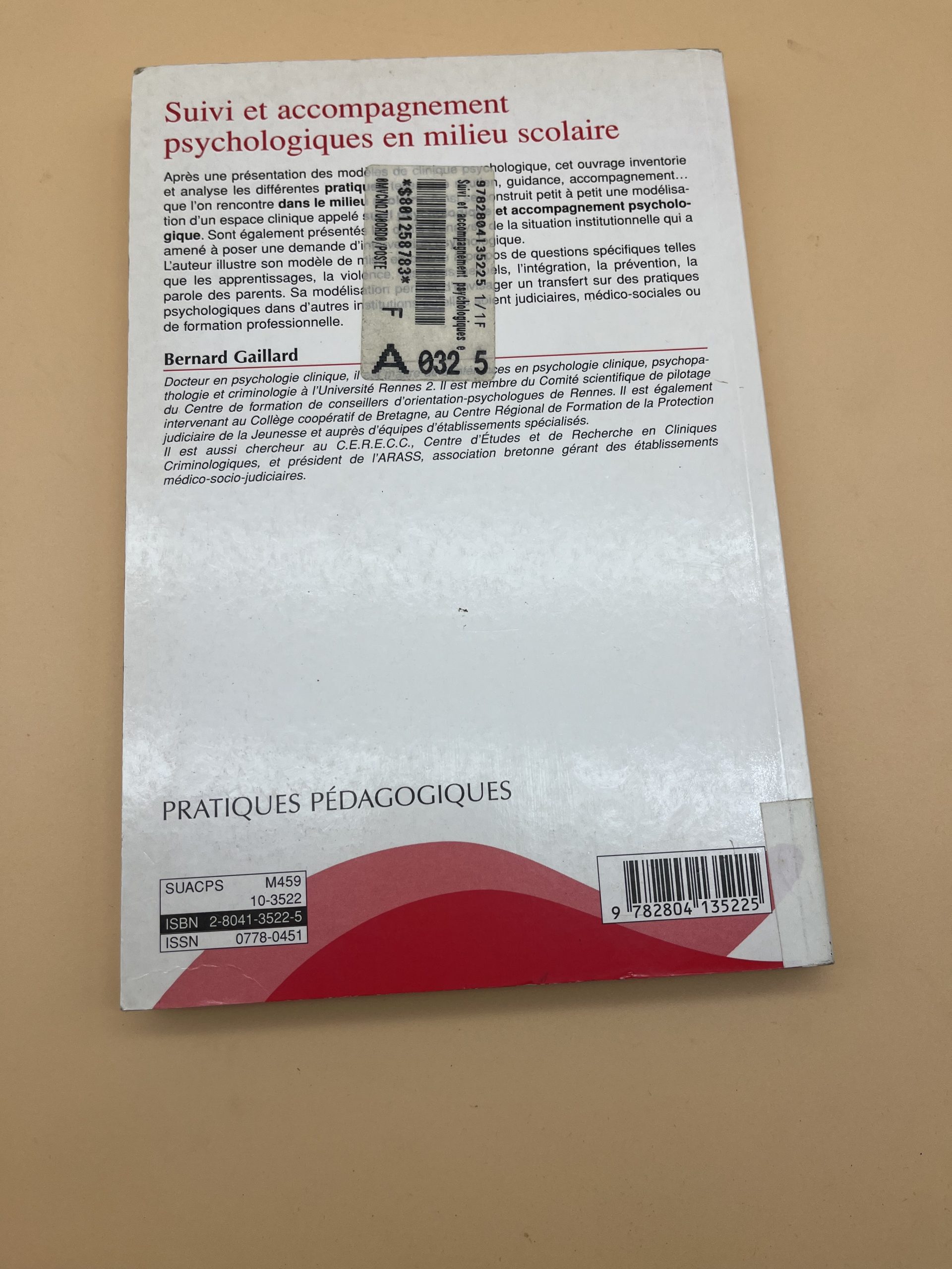 Description : Bernard Gaillard, psychologue clinicien, traite des enjeux de l’accompagnement psychologique à l’école. Cet ouvrage (De Boeck) définit le cadre clinique des interventions auprès des élèves en difficulté, en analysant la relation entre l’enfant, sa famille, l’école et le psychologue scolaire.