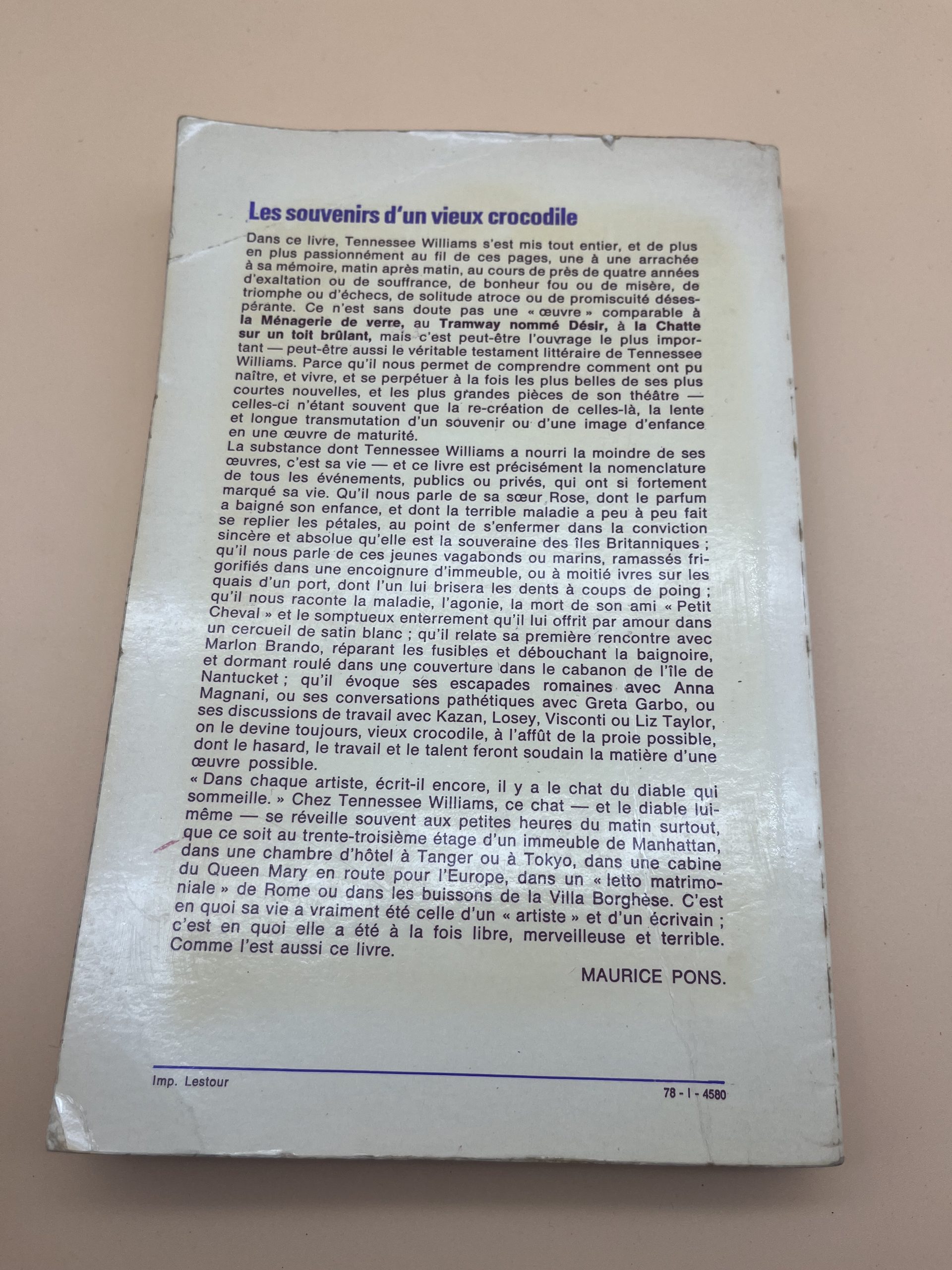 Tennessee Williams — Mémoires, édition Robert Laffont (collection Vécu).​