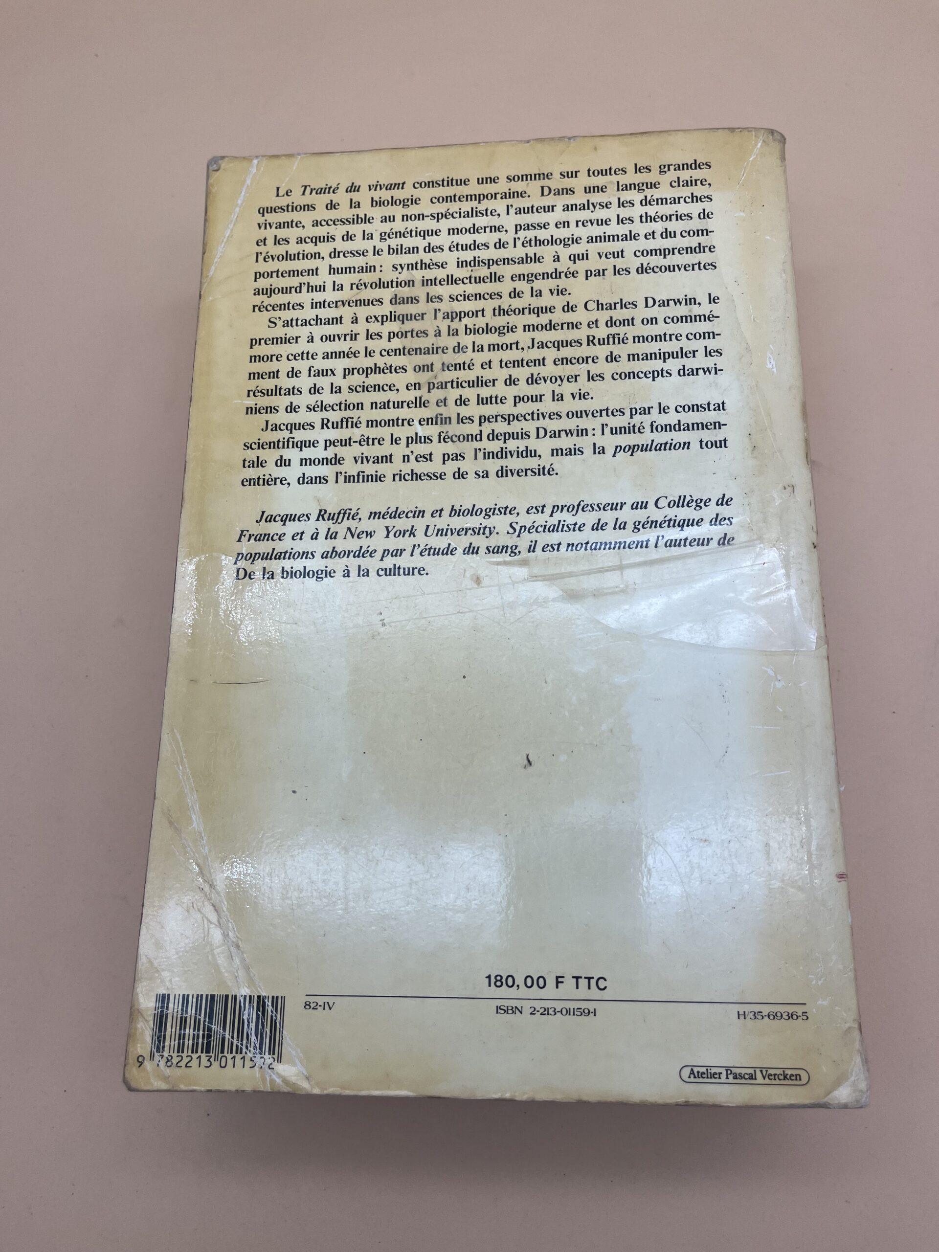 Ouvrage de référence de Jacques Ruffié sur biologie, évolution et sciences du vivant. Fayard 1982. Grand format, livre d’occasion.