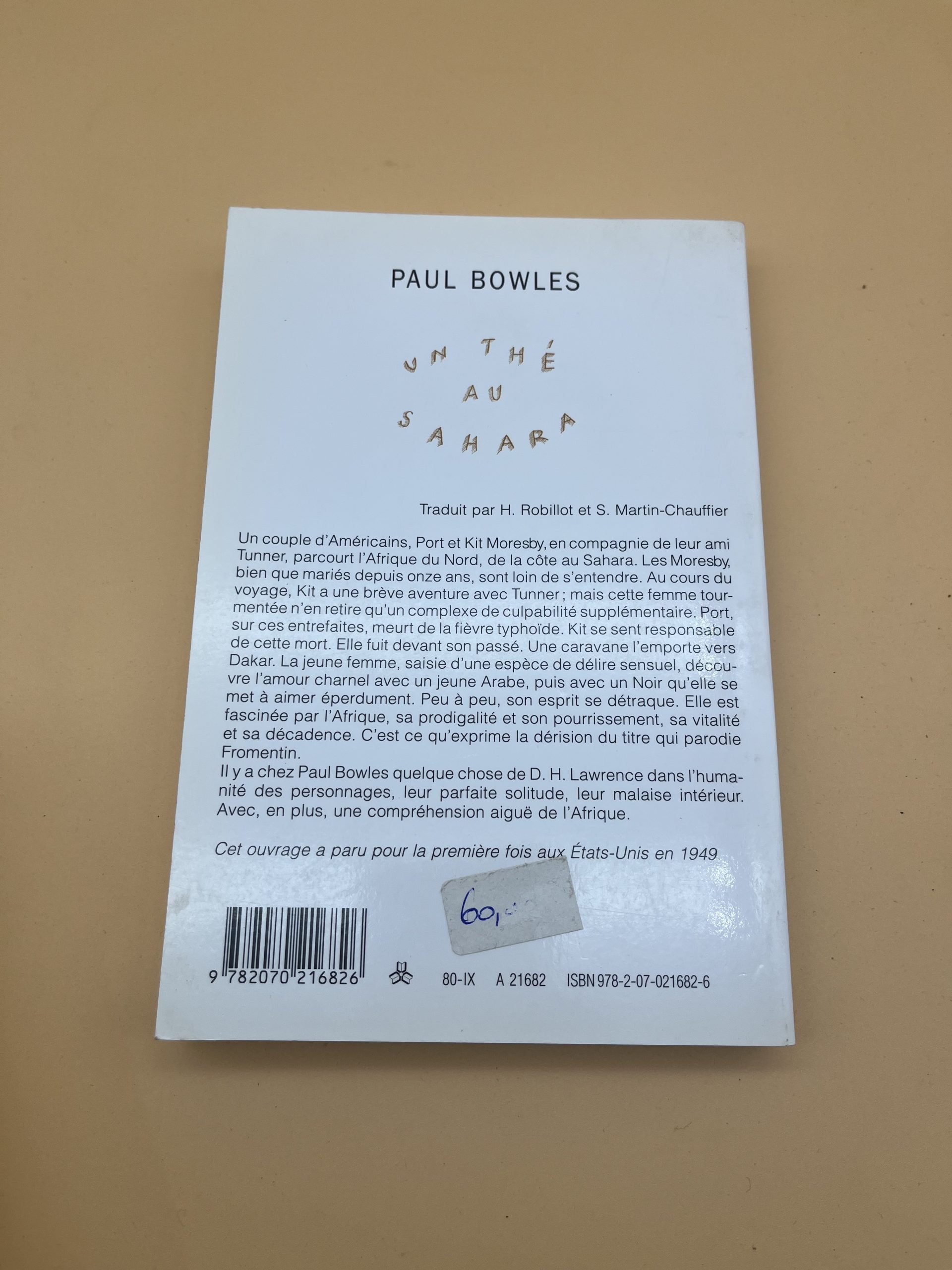 Description: Classique de Bowles sur l’errance au Sahara et le couple en crise; édition L’Imaginaire, référence pour littérature de voyage et Tanger; style dépouillé et envoûtant