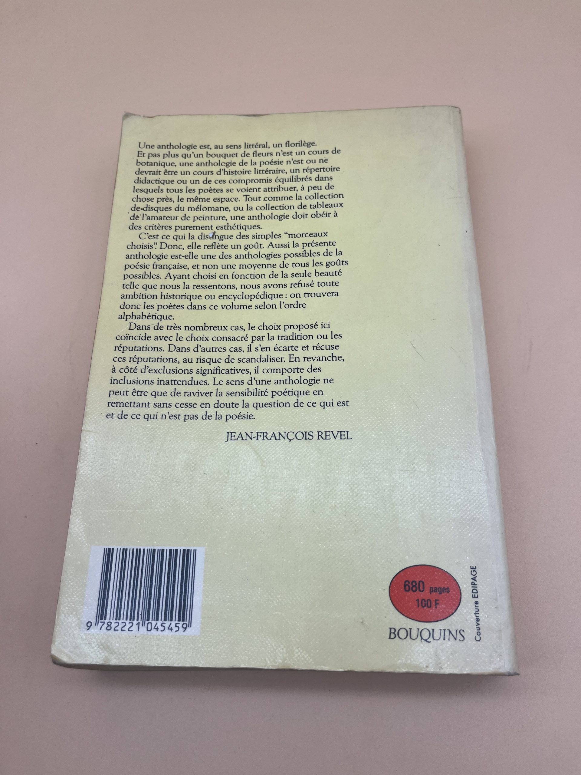 Sélection de poésie française par J-F. Revel. Collection Bouquins Robert Laffont. Une anthologie personnelle et érudite de référence.