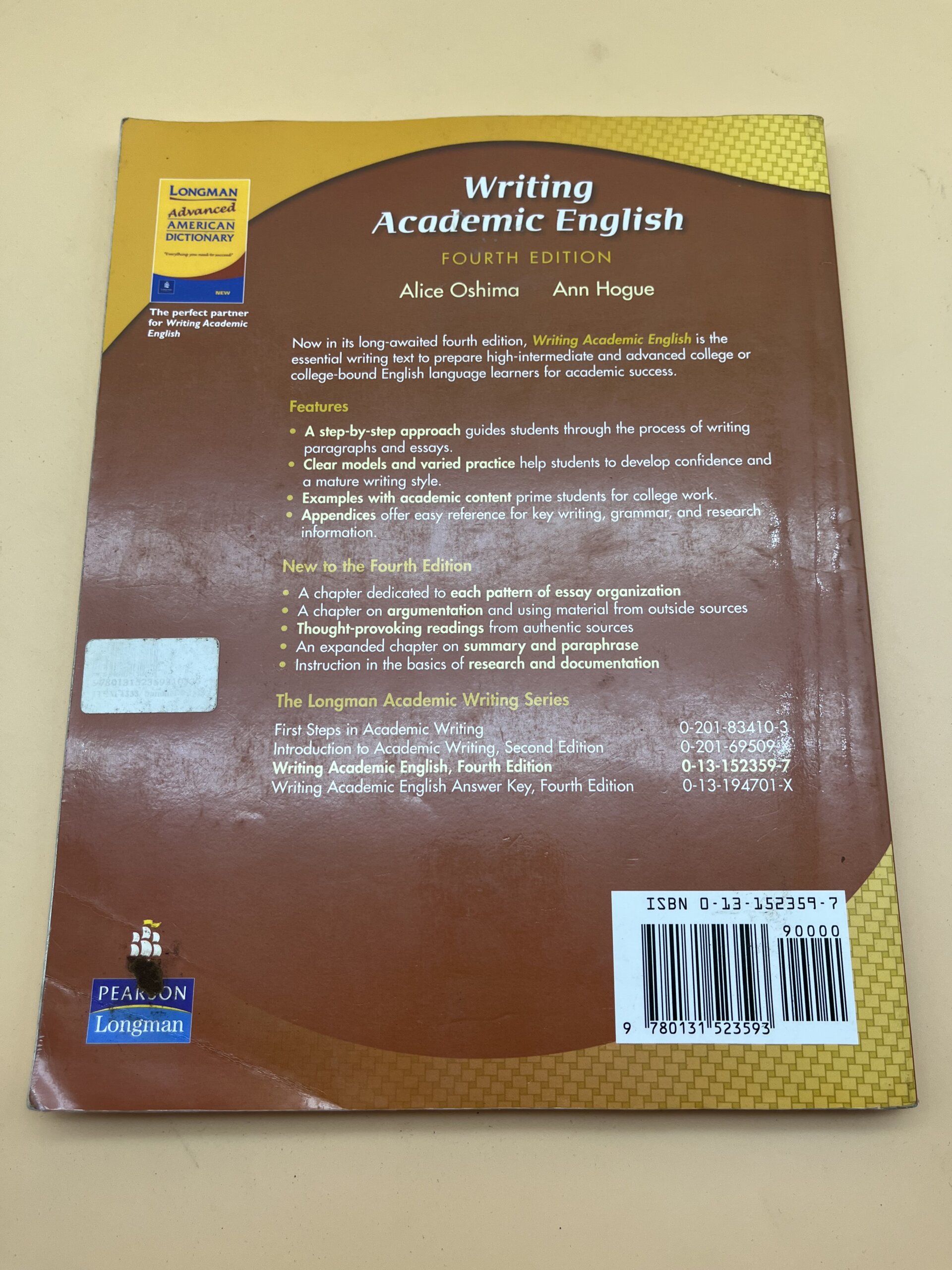 Apprenez à écrire en anglais académique avec Writing Academic English d’Alice Oshima et Ann Hogue, un manuel indispensable pour les étudiants.